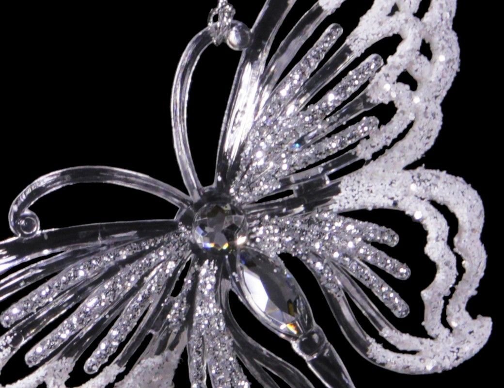 Ёлочное украшение КРУЖЕВНАЯ БАБОЧКА - Адмирал, прозрачно-серебристая, 13 см, Forest Market