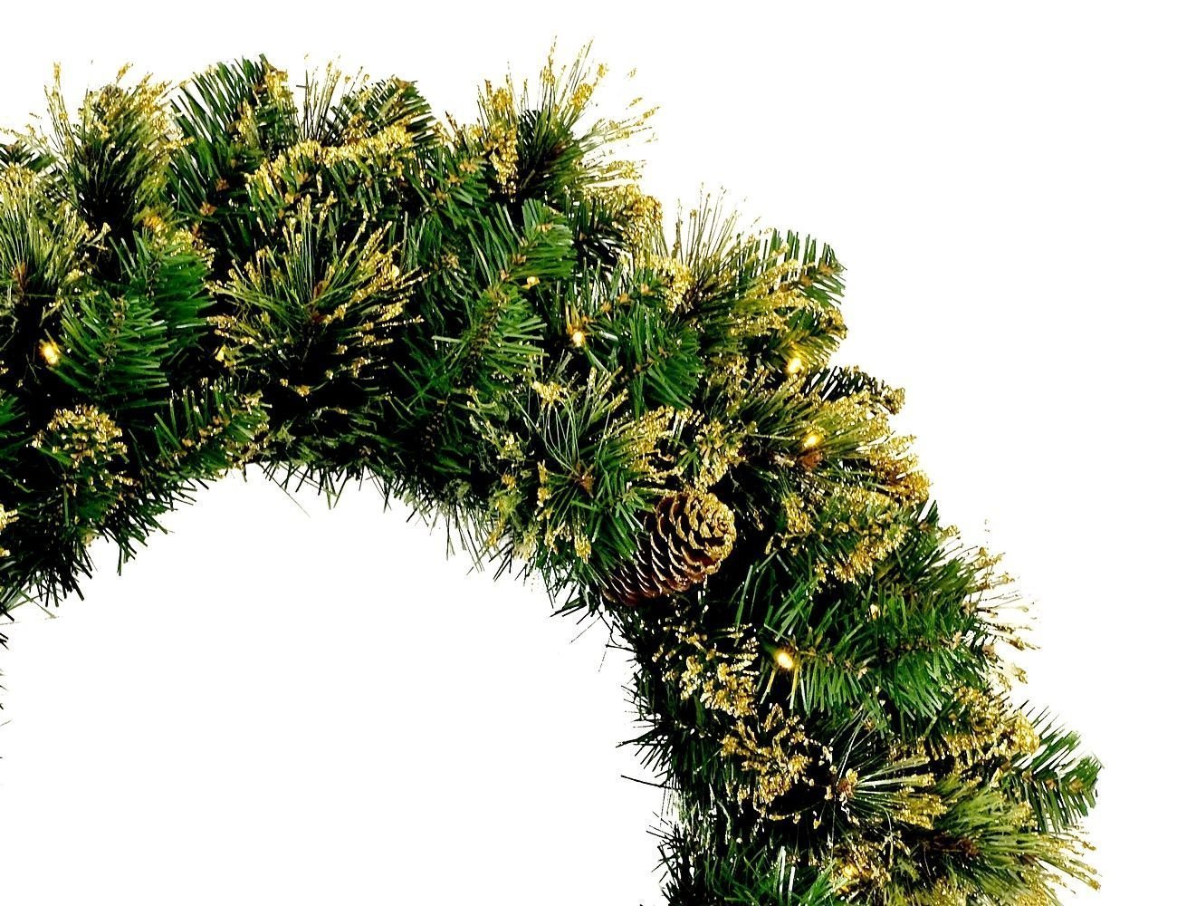 Хвойный венок с лампочками Golden Bristle, зелёный, хвоя - леска+PVC, 50 тёплых белых LED-огней, 61 см, батарейки, National Tree Company
