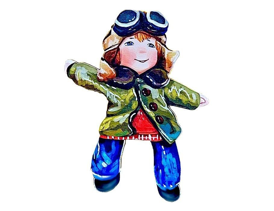Елочная игрушка Будущий пилот - Зимние Каникулы 10 см, дерево, подвеска, МанузинЪ