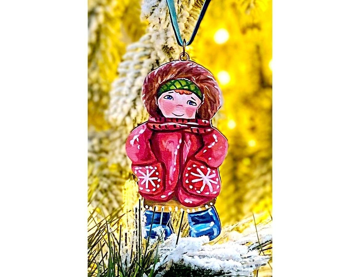 Елочная игрушка Девочка в шубке - Зимние Каникулы 10 см, дерево, подвеска, МанузинЪ