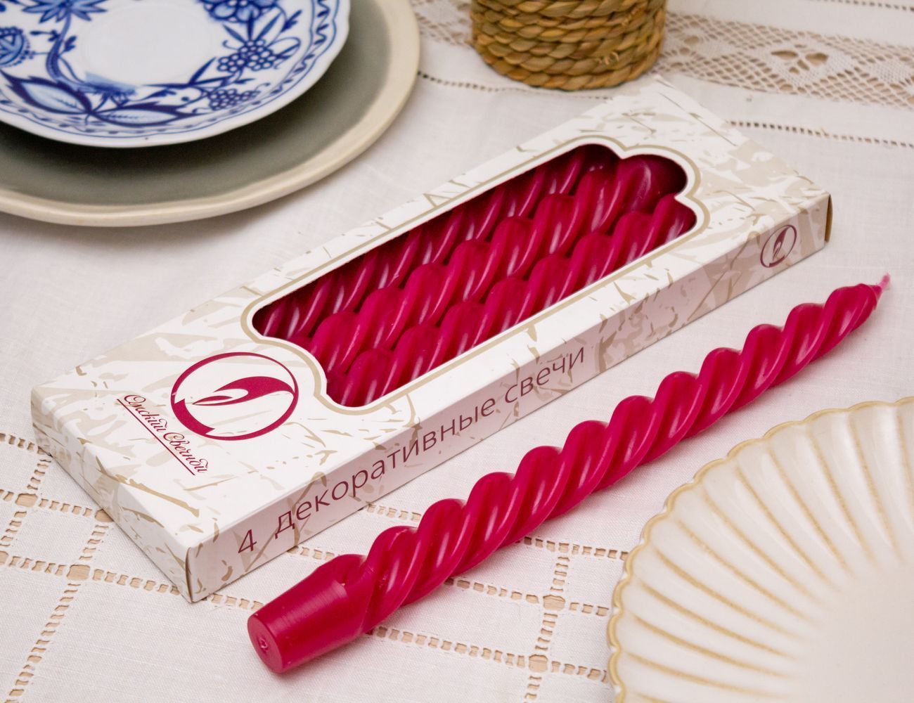 Свечи витые, малиновые, 24.5 см, (упаковка - 4 шт.), Омский Свечной