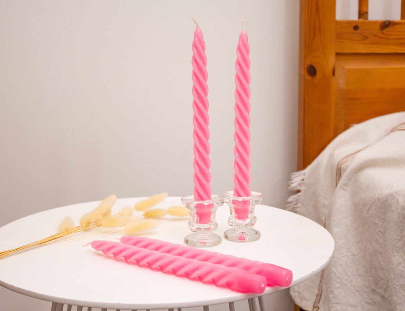 Свечи витые, светло-розовые, 24.5 см, (упаковка - 4 шт.), Омский Свечной