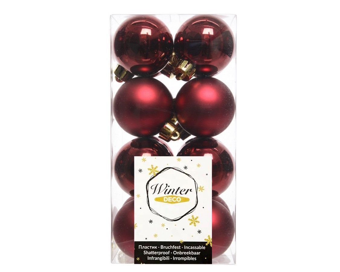 Набор пластиковых шаров ДЕЛЮКС МИНИ (матовые и глянцевые), цвет: бордовый, 4 см, упаковка 16 шт., Winter Deco