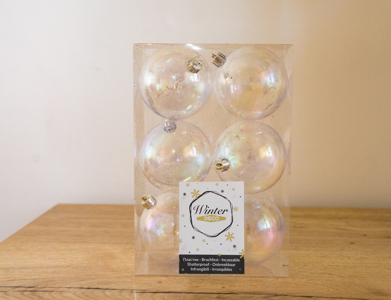 Набор однотонных пластиковых шаров глянцевых, цвет: прозрачный перламутр, 80 мм, упаковка 6 шт., Winter Deco
