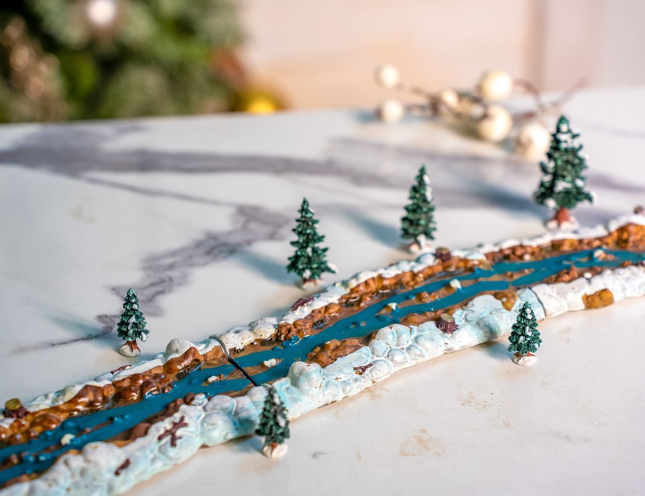 Бежит-бежит по городку весёлый незамерзающий ручей, среди снежных сугробов, уютных елочек - чудесное зрелище!