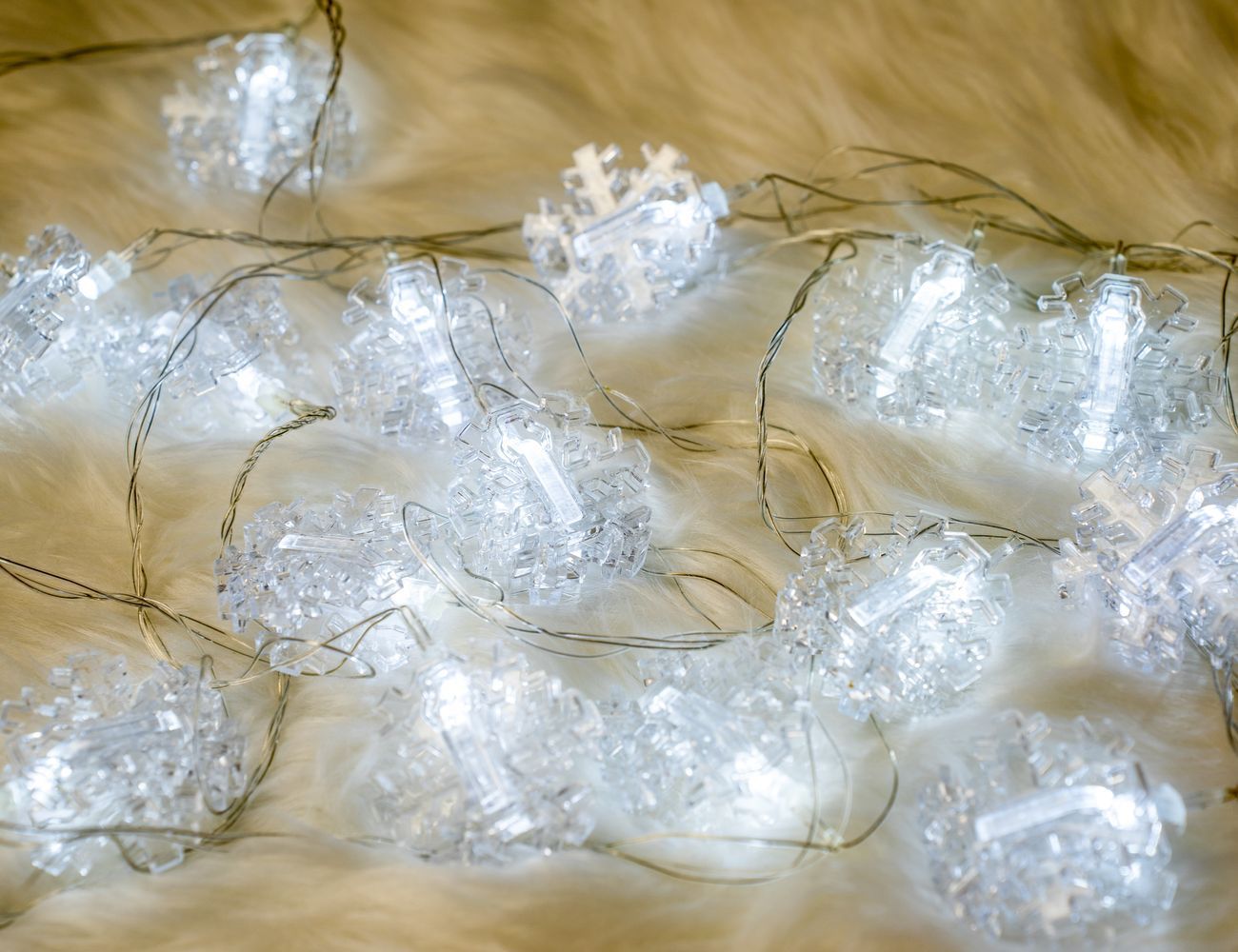 Количество ламп: 20 холодных белых ламп с фигурными насадками - снежинками.