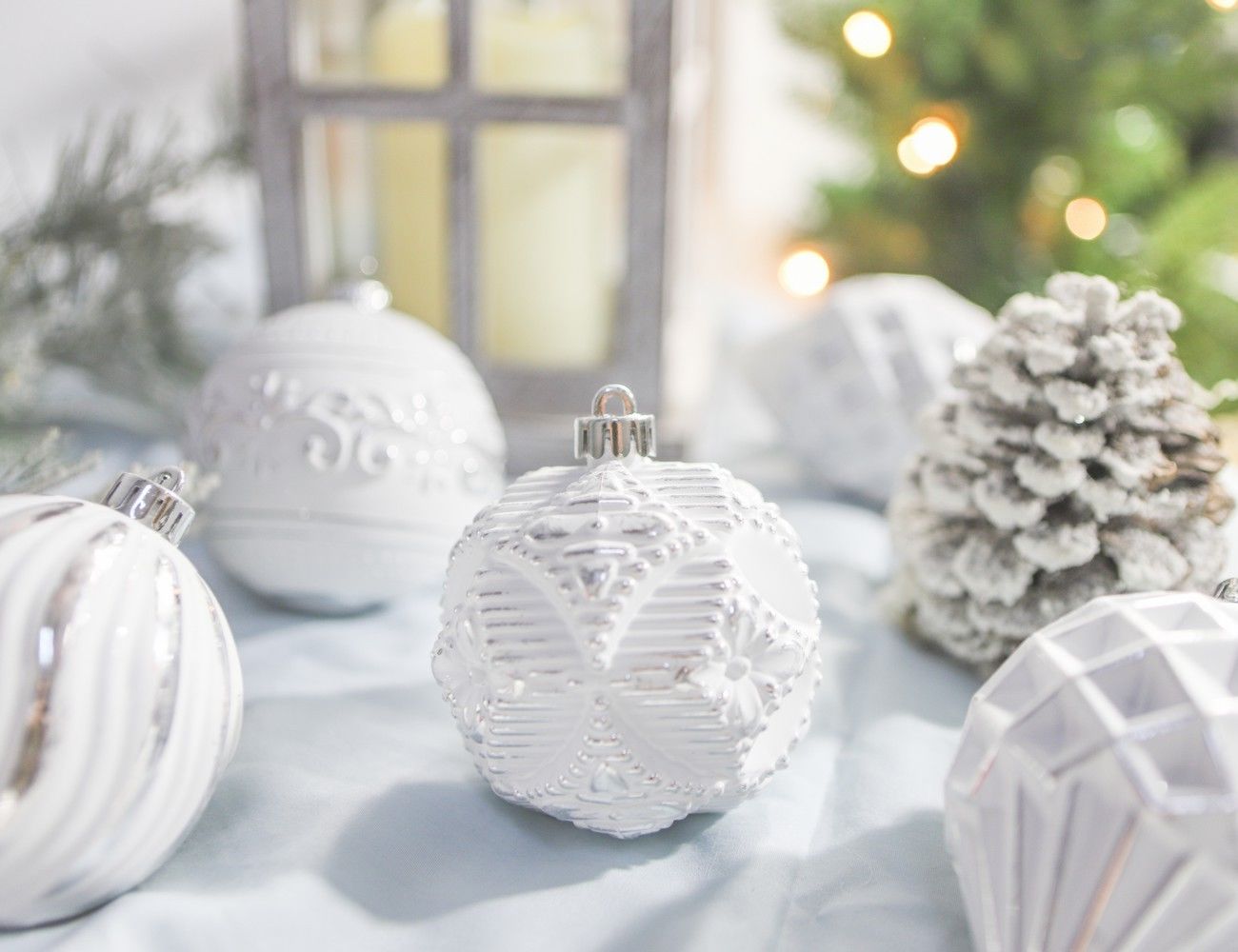 Набор пластиковых шаров БЭЛЬ ВЭСТИТО, пластик, белый с серебряным, 8 см, упаковка 16 шт., Winter Deco