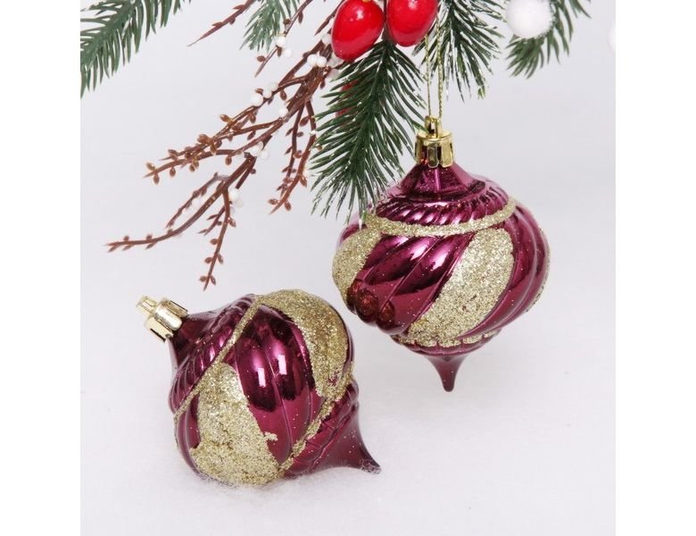 Набор елочных шаров-луковок МЕРЦАЮЩЕЕ РОНДО, рубиновый, пластик, 6 см, 2 шт., Serpantin