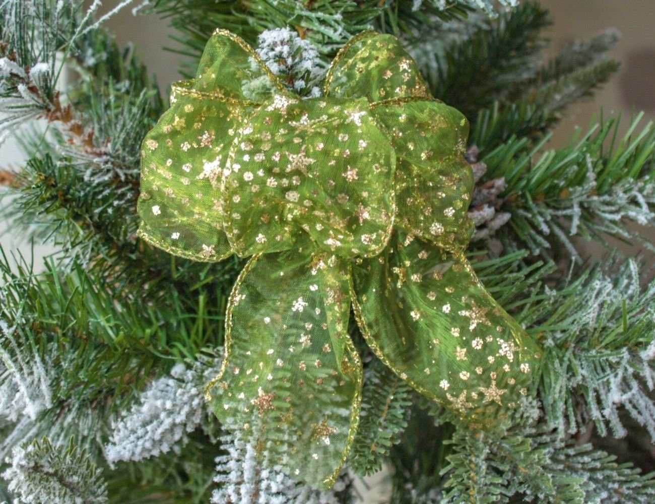 Бант в качестве праздничного украшения ёлочки - отличное решение, ведь он никогда не разобьётся, не сломается и займёт минимум места при хранении. Но главное, бант - это красиво и изысканно! Такой бант из органзы с мерцающим звёздным декором, отлично держит форму, при желании им можно заменить ёлочную верхушку, а можно разместить несколько таких бантов между другими украшениями - тогда ваша ёлочка будет выглядеть настоящей кокеткой!