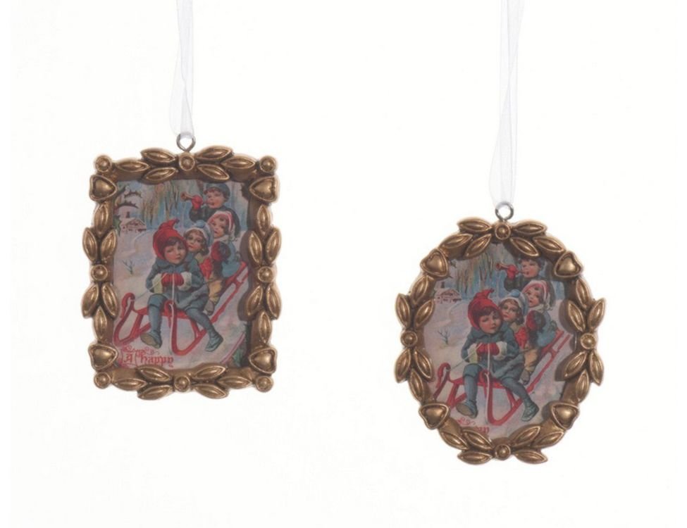 Набор ёлочных игрушек РОЖДЕСТВЕНСКИЕ ОТКРЫТКИ В РАМОЧКАХ, полистоун, 7 см, 2 шт., Kaemingk