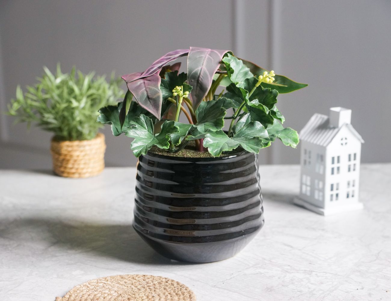 Если вы занятой человек, много времени проводите на работе, в командировках или в путешествиях, то вряд ли у вас есть возможность содержать комнатные растения. Но возвращаясь домой, всегда хочется окунуться в атмосферу уюта. Современные искусственные растения прекрасны так же, как и настоящие, и вы всегда можете быть уверены, что после долго отсутствия найдёте их такими красивыми, как и оставили. Вот такая компания растений с контрастными зелёными и фиолетовыми листиками будет радостно встречать вас из каждой поездки!