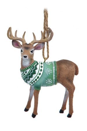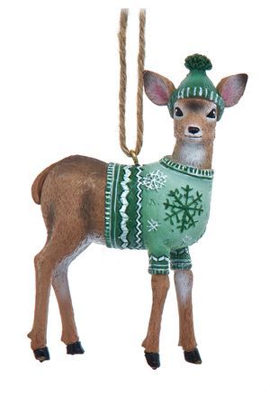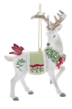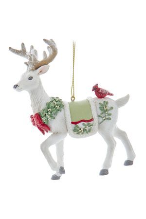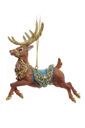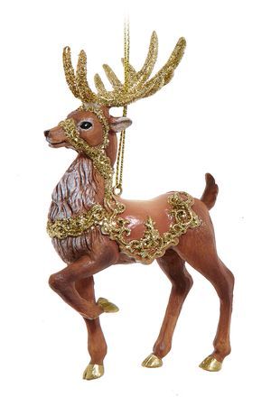 Ёлочная игрушка ОЛЕНЬ С ПУАНСЕТТИЯМИ, шампань, полистоун, 13 см, Kurts Adler
