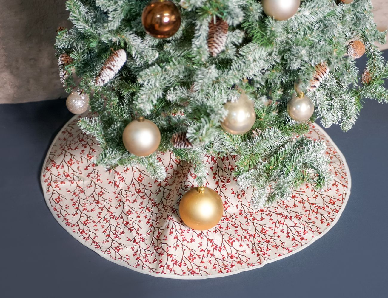 Специальные "юбки", укрывающие и украшающие основание ёлки, не самый привычный, но очень удобный и нужный элемент праздничного оформления. Действительно, как часто, украсив ёлочку, мы не знаем чем прикрыть не очень симпатичную крестовину или ведро, в котором стоит деревце. "Юбка" для ёлочки - идеальное решение! Тем более, что вы можете подобрать в комплект к ней дорожку для новогоднего стола с таким же декором из заснеженных ягод - получится и красиво, и необыкновенно стильно!