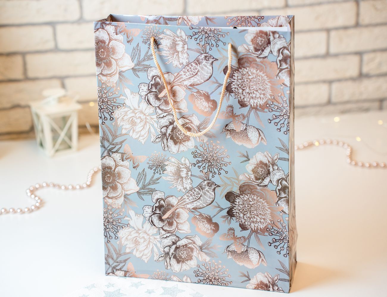 Подарочный пакет ЗОЛОТЫЕ САДЫ, серо-голубой, 34х25 см, Koopman International