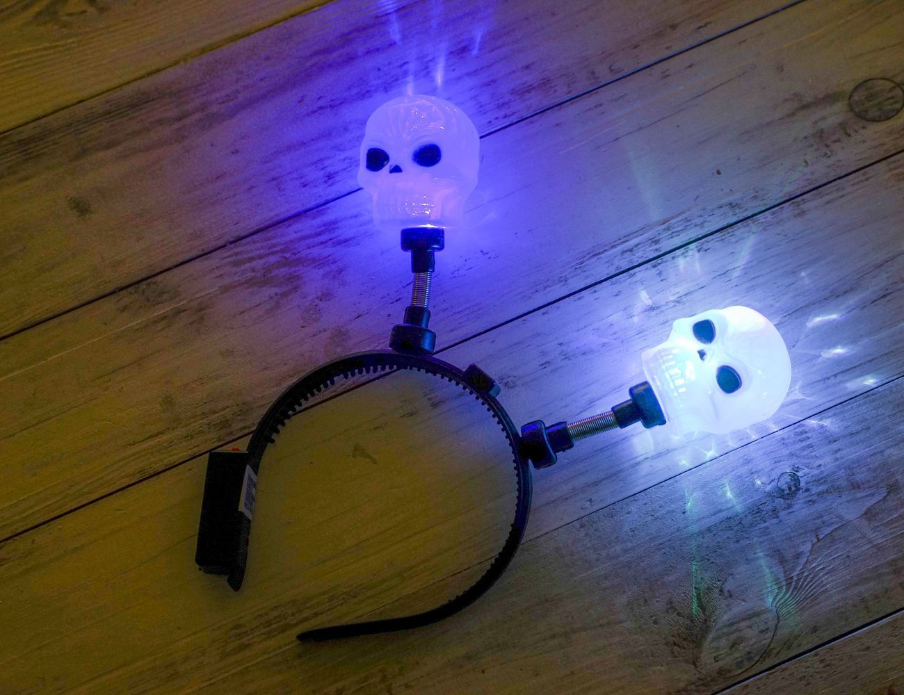 Если вы любите карнавалы и с удовольствием принимаете участие в тематических вечеринках, то в вашем арсенале обязательно должен быть и такой "головной убор", ведь с ним так легко создать нужный образ на Хеллоуин! Со светящимися во тьме и покачивающимися на пружинках "ужасающими" черепами на голове, вы произведёте настоящий фурор!