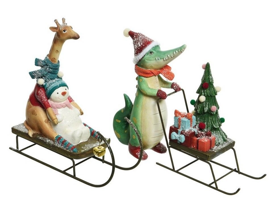 Статуэтка САНКИ С ЧУДЕСАМИ, крокодил с санками, полистоун, 22 см, Kaemingk