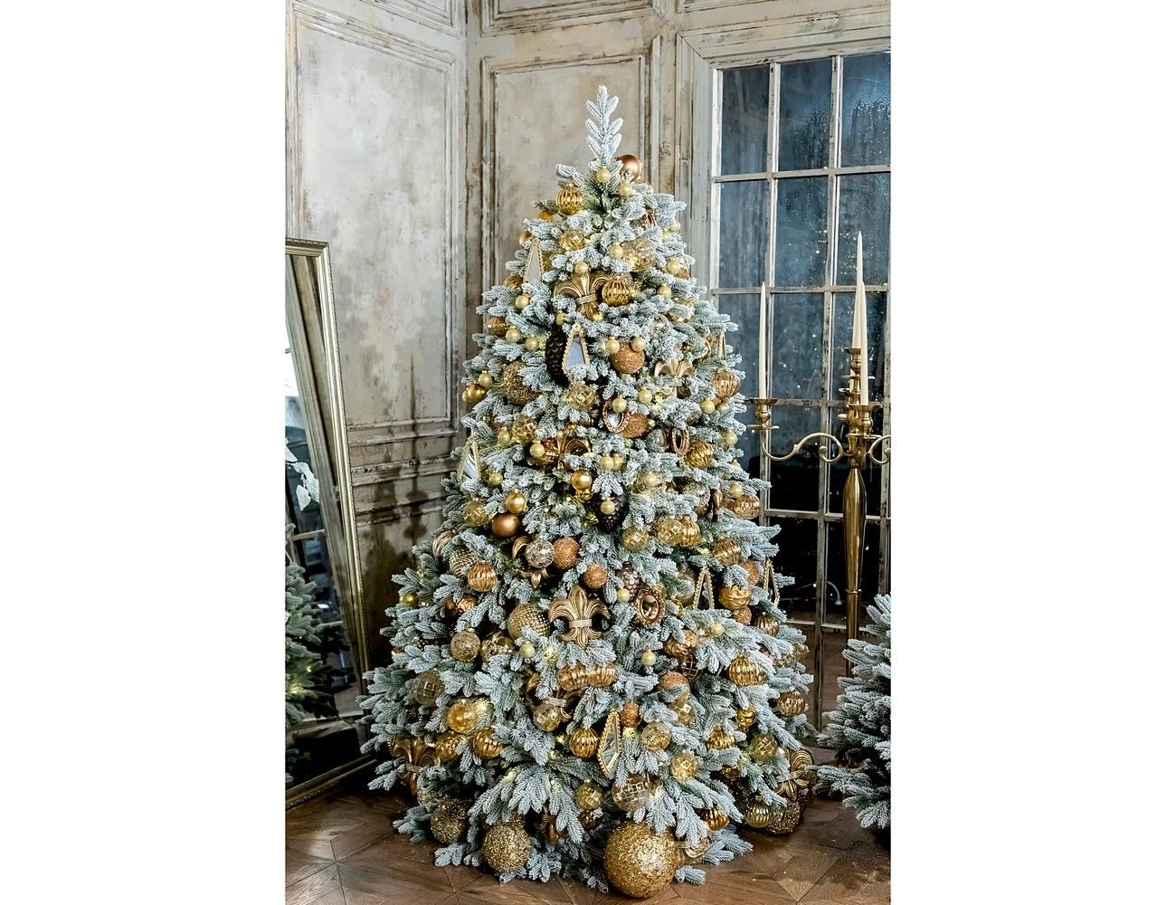 По-королевски роскошная ель Версальская выглядит абсолютно, как живая лесная красавица! Густо заснеженная хвоя, которая полностью состоит из литых 'иголочек', визуально неотличимых от настоящих, множество лапок, классический силуэт - главные составляющие идеальной новогодней ёлки, на которой так хочется поскорее начать развешивать самые красивые игрушки!