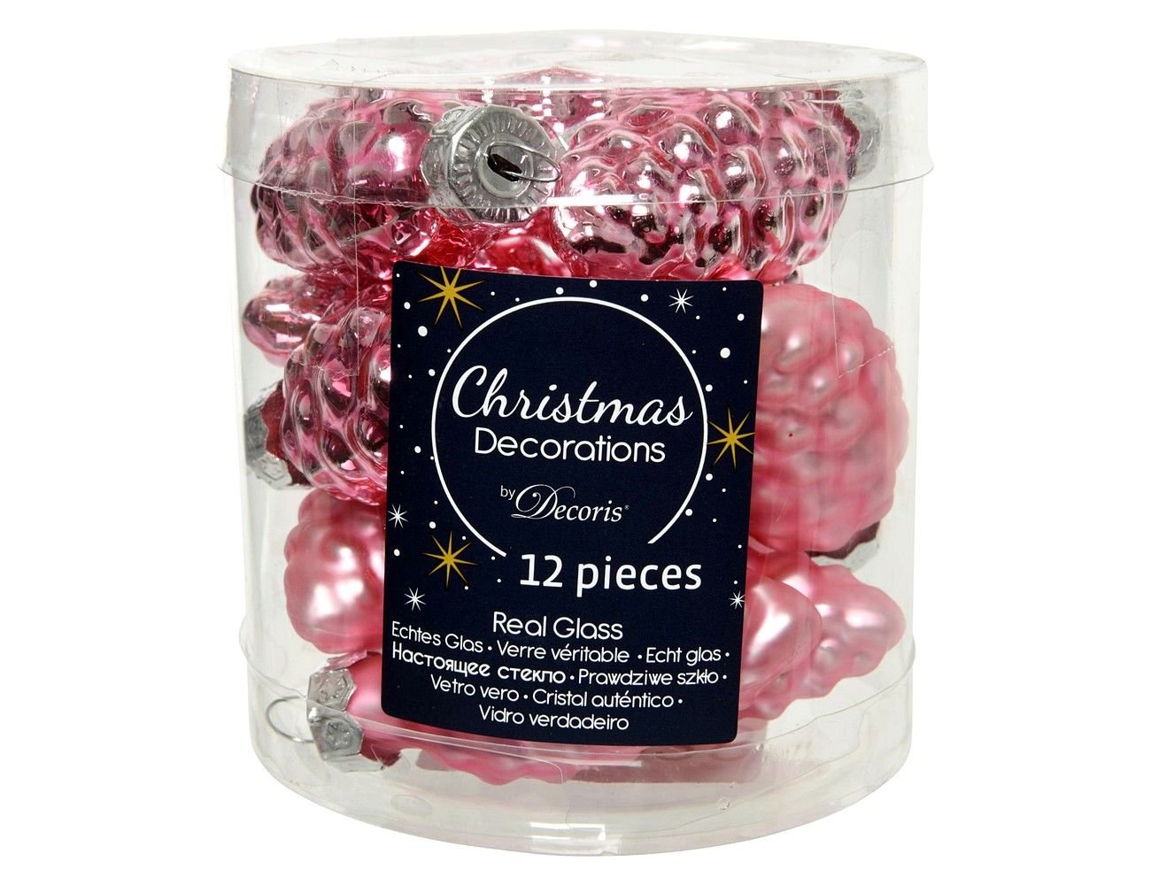 Набор ёлочных игрушек ШИШКИ-МАЛЫШКИ, стекло, розовый конфетти, глянцевые и матовые, 60 мм, 12 шт., Kaemingk