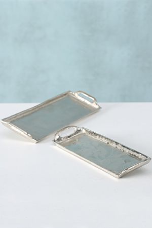 Зеркальная поверхность, хрустальные переливы бортиков - эти необыкновенные подносы станут изумительной основой для дизайнерских композиций, особенно если в них присутствуют свечи или, например, гирлянды на тонкой проволоке, усыпанные крошечными огоньками-росинками, многочисленные отражения которых словно бы уносят в другую, волшебную реальность! Статуэтки, бокалы, цветы, угощение - всё приобретёт загадочную многогранность и глубину!