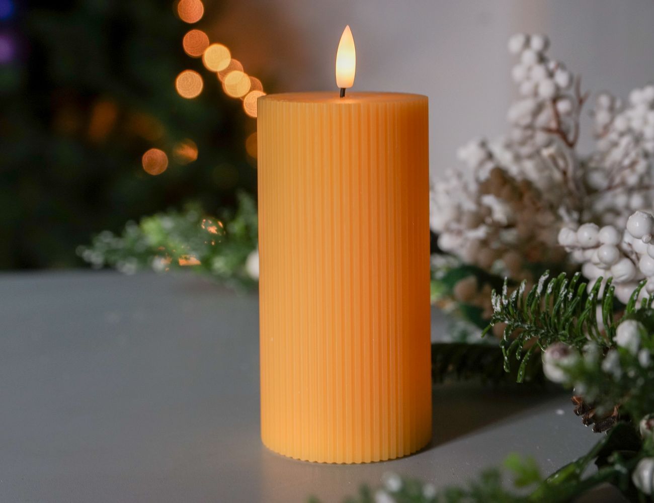 Свеча-столбик светодиодная восковая РИФЛИ, горчичная, мерцающий огонёк, "натуральный фитилек", 15 см, батарейки, Peha Magic