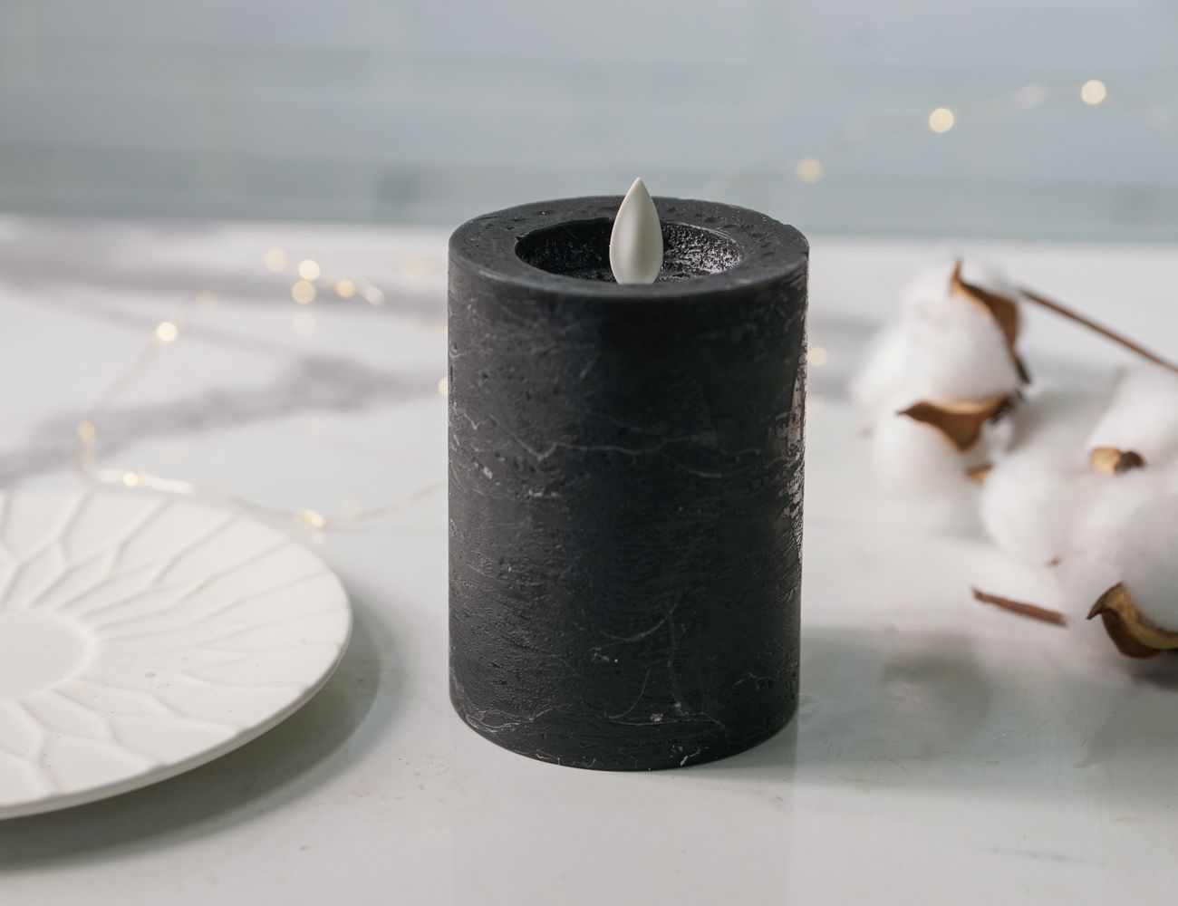 Свеча светодиодная парафиновая ЛИССЭ АНТРАЦИТ, имитация живого пламени, колышущийся язычок, 10 см, батарейки, Peha Magic