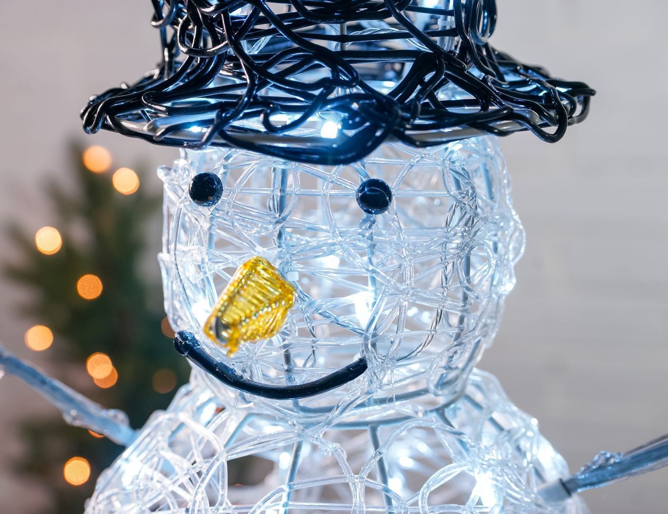 Светящаяся фигура СИЯЮЩИЙ СНЕГОВИК, акриловые нити, 80 холодных белых LED-огней мигающих, 65 см, уличный, Kaemingk