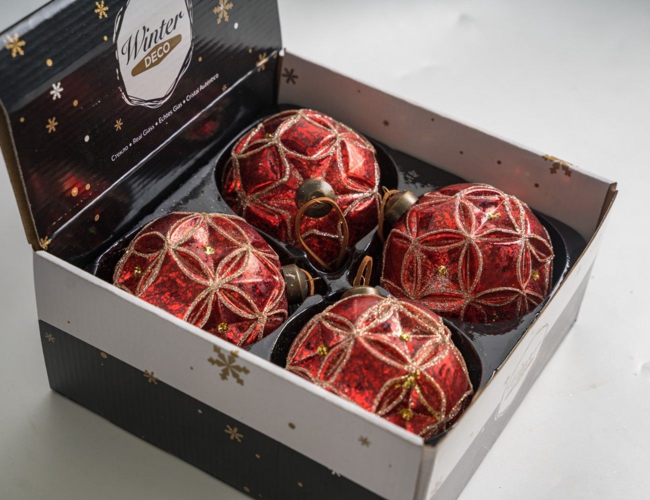 Среди множества ёлочных украшений порой попадаются маленькие произведения новогоднего искусства - они, словно яркие штрихи на полотне художника, становятся в декоре теми акцентами, на которые хочется любоваться, не отрывая взгляд! Четыре великолепных шара из небольшого набора 'Рокайль' - и есть те самые произведения, ведь в них есть всё: яркая муарово-алая поверхность, геометрия и обтекаемость, тонкая искристость рисунка, золотистые акценты... Подарите вашей ёлочке капельку истинной роскоши, а себе - эстетическое удовольствие!