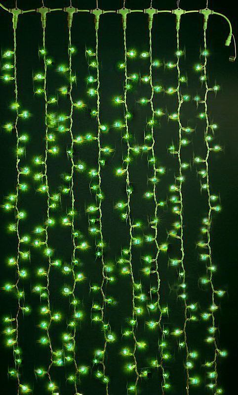 Световой дождь 2.5*1.5 м, 625 зеленых микроламп, прозрачный ПВХ, соединяемый, IP20, SNOWHOUSE
