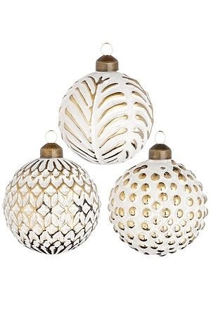 Если представить себе, что чья-то невидимая волшебная рука вылепила из свежевыпавшего снега шарики, украсила их орнаментами, макнула в золотистые утренние лучи да и припудрила искрящимися льдинками, то как раз получится набор ёлочных шаров 'Сабэль'. Безупречный стиль для идеального праздничного декора!