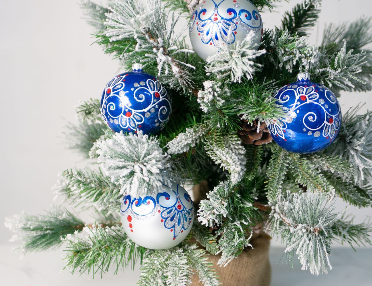 Набор стеклянных шаров КОКОШНИК, узорчатый, серебряно-синие, 85 мм, 4 шт., Елочка