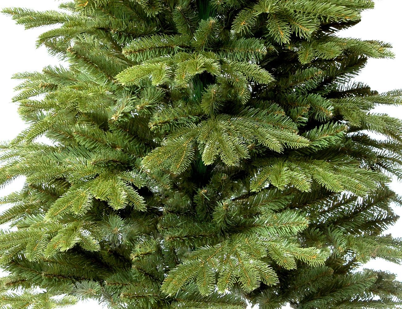 Тип хвои: литая - внешние веточки, ПВХ (PVC) - приствольное пространство. Литые иголки выглядят абсолютно натурально - с расстояния в три шага ель смотрится как живая елка. Мягкая хвоя из ПВХ придает кроне объем и густоту.