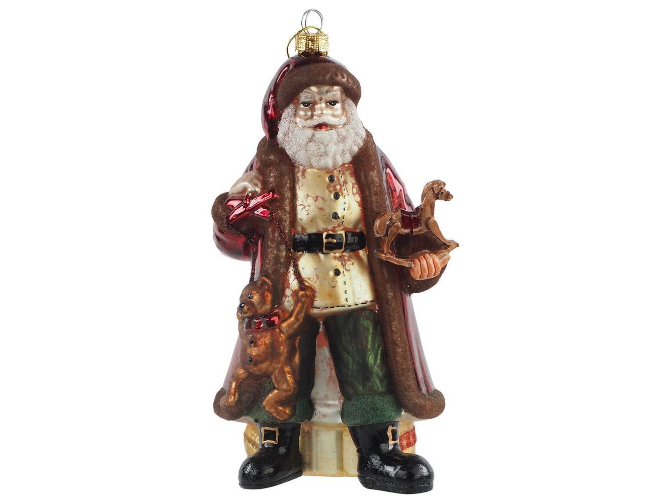 Ёлочная игрушка САНТА КУКЛОВОД с мишкой, стекло, 19 см, Winter Deco