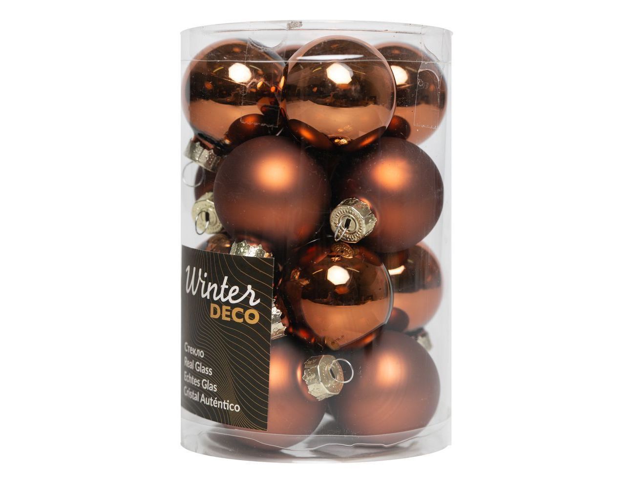 Стеклянные шары ДЕЛЮКС МИНИ глянцевые и матовые, цвет: эспрессо, 35 мм, упаковка 16 шт., Winter Deco