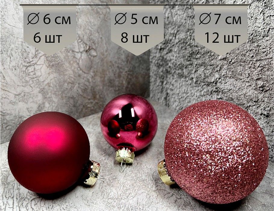 Диаметр: 5 см - 8 шт, 6 см - 6 шт, 7 см - 12 шт.