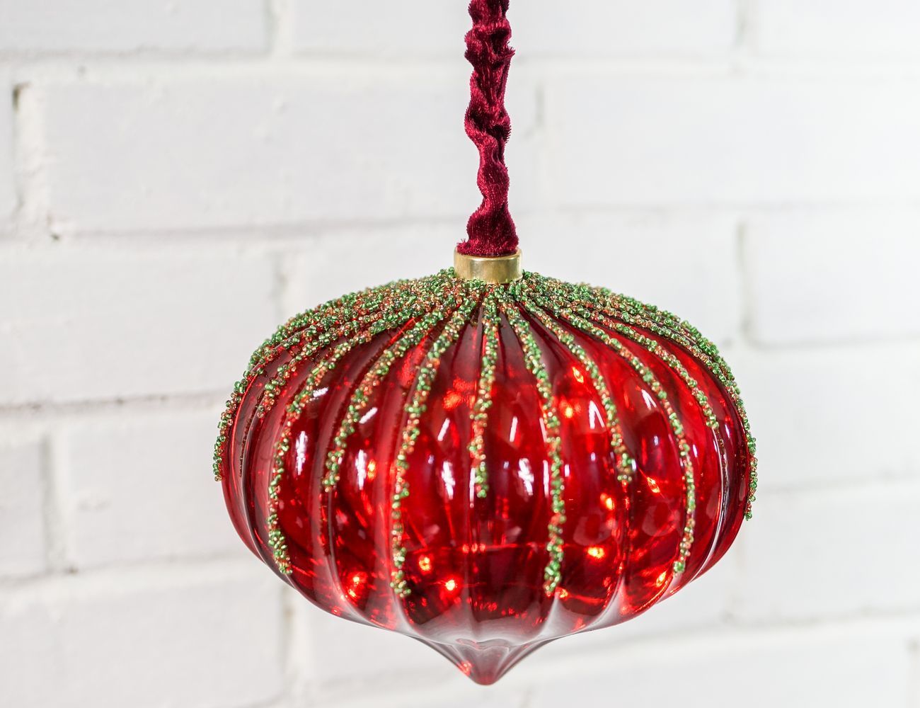 До чего же красива эта изящная рубиновая 'луковка', украшенная нежно-мерцающими искорками и кажется, будто в ней скрывается какая-то тайна… Впрочем, возможно и не кажется, потому что внутри этого удивительного украшения 'живут' крошечные тёплые огоньки и, когда они загораются, словно раскрывается секрет его завораживающей красоты!