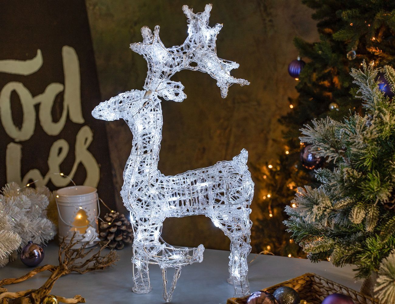 Светящаяся фигура ОЛЕНЬ БУСКАР, акриловые нити, 40 холодных белых LED-огней, 58 см, уличный, Winter Deco