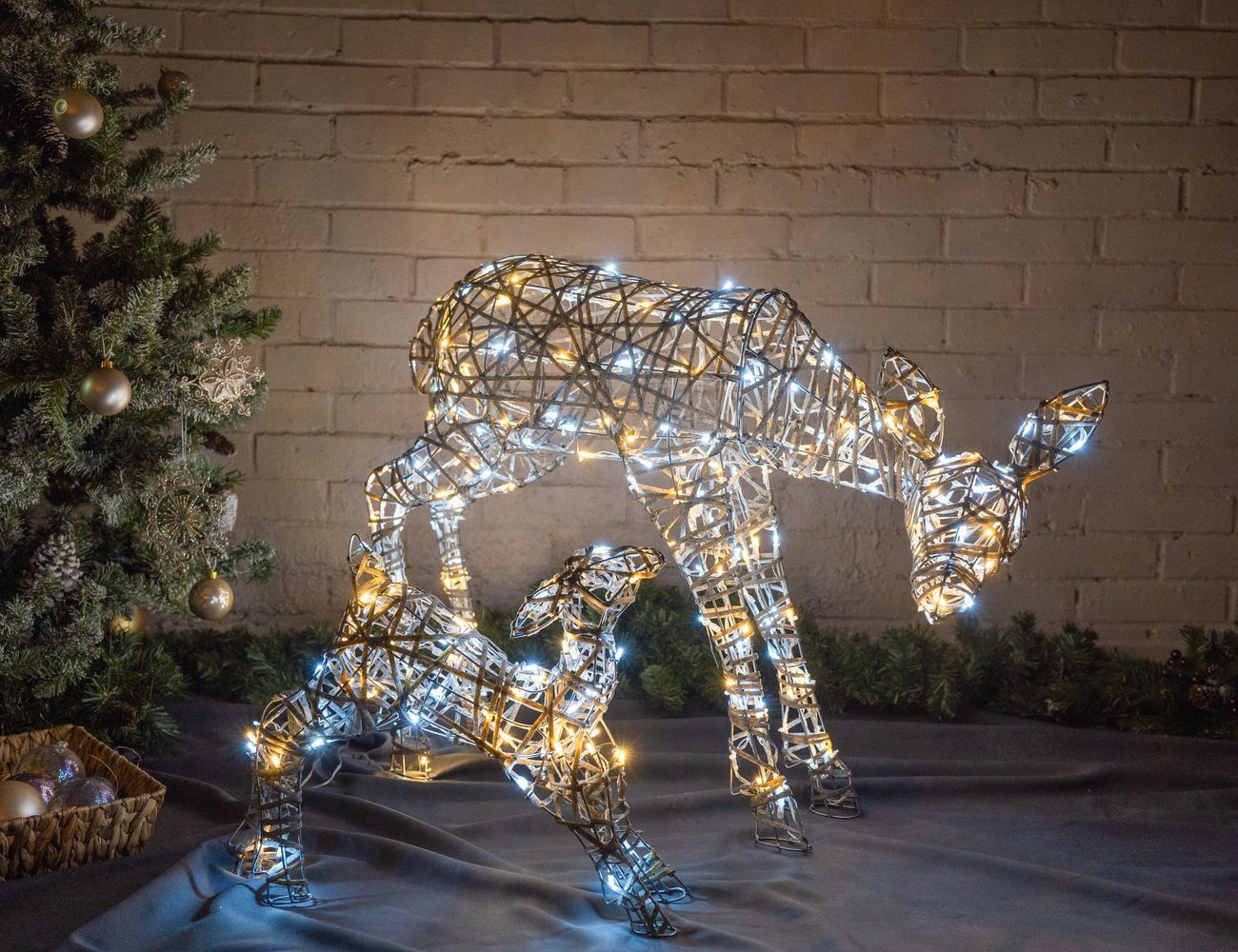 Светящиеся фигуры ОЛЕНИ - СИЯЮЩАЯ НЕЖНОСТЬ, акриловые нити, 230 тёплых/холодных белых LED-огней, 48 и 102 см, уличные, Winter Deco
