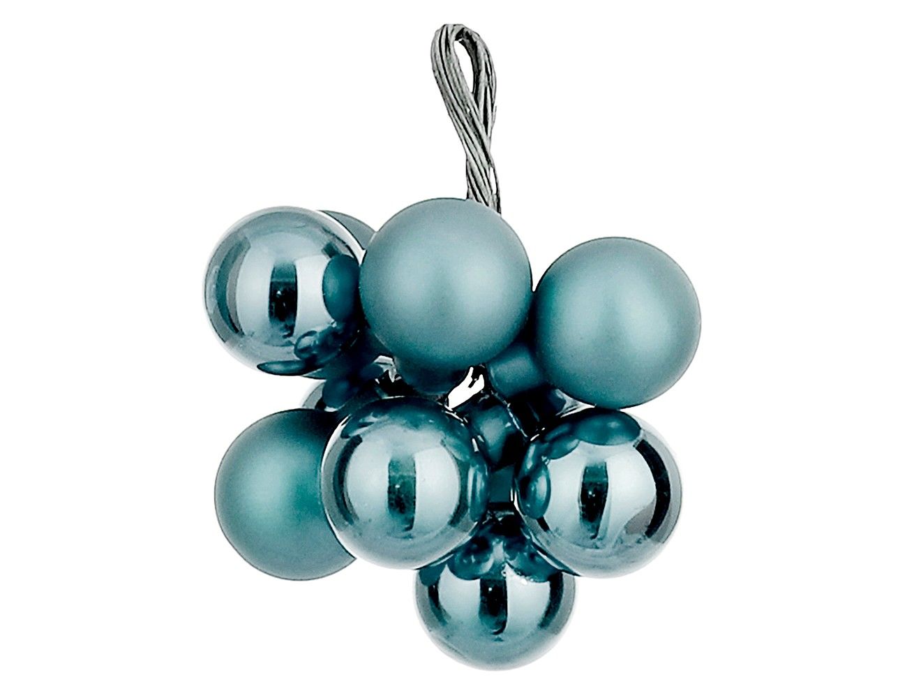 ГРОЗДЬ стеклянных матовых и глянцевых шариков на проволоке, 10 шаров по 20 мм, цвет: бирюзово-голубой, Christmas Deluxe