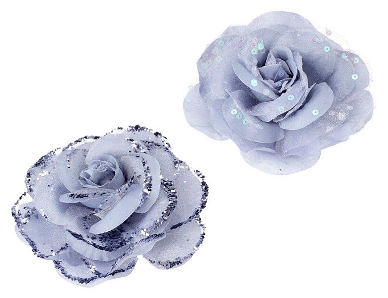 Искусственные розы ЛЮЧИАНИ на клипсе, полиэстер, серо-голубые, 9 см, набор - 2 шт., Koopman International