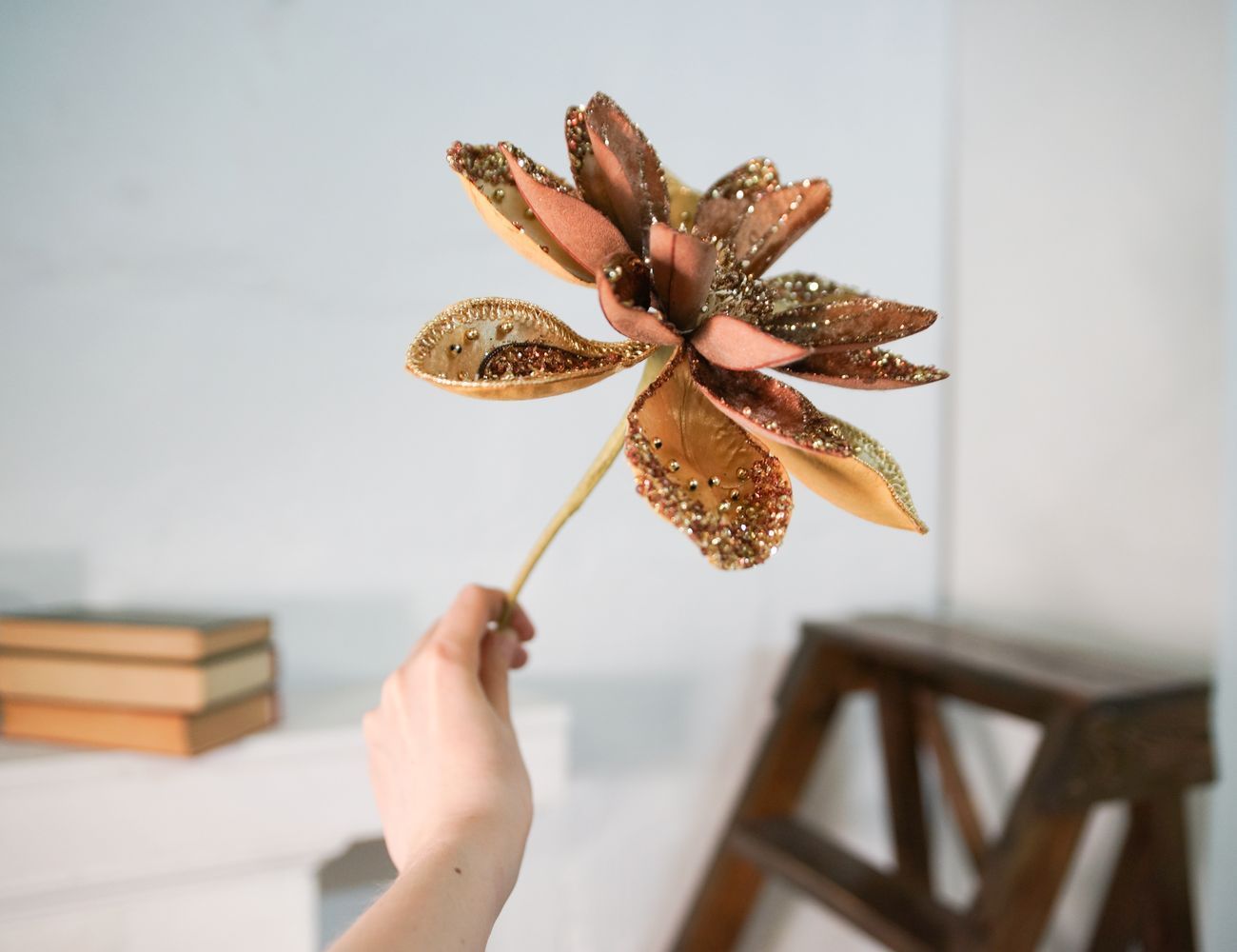 Искусственный цветок на стебле КУВШИНКА ДОРОТЕЯ, полиэстер, золотая, 56 см, Christmas Deluxe
