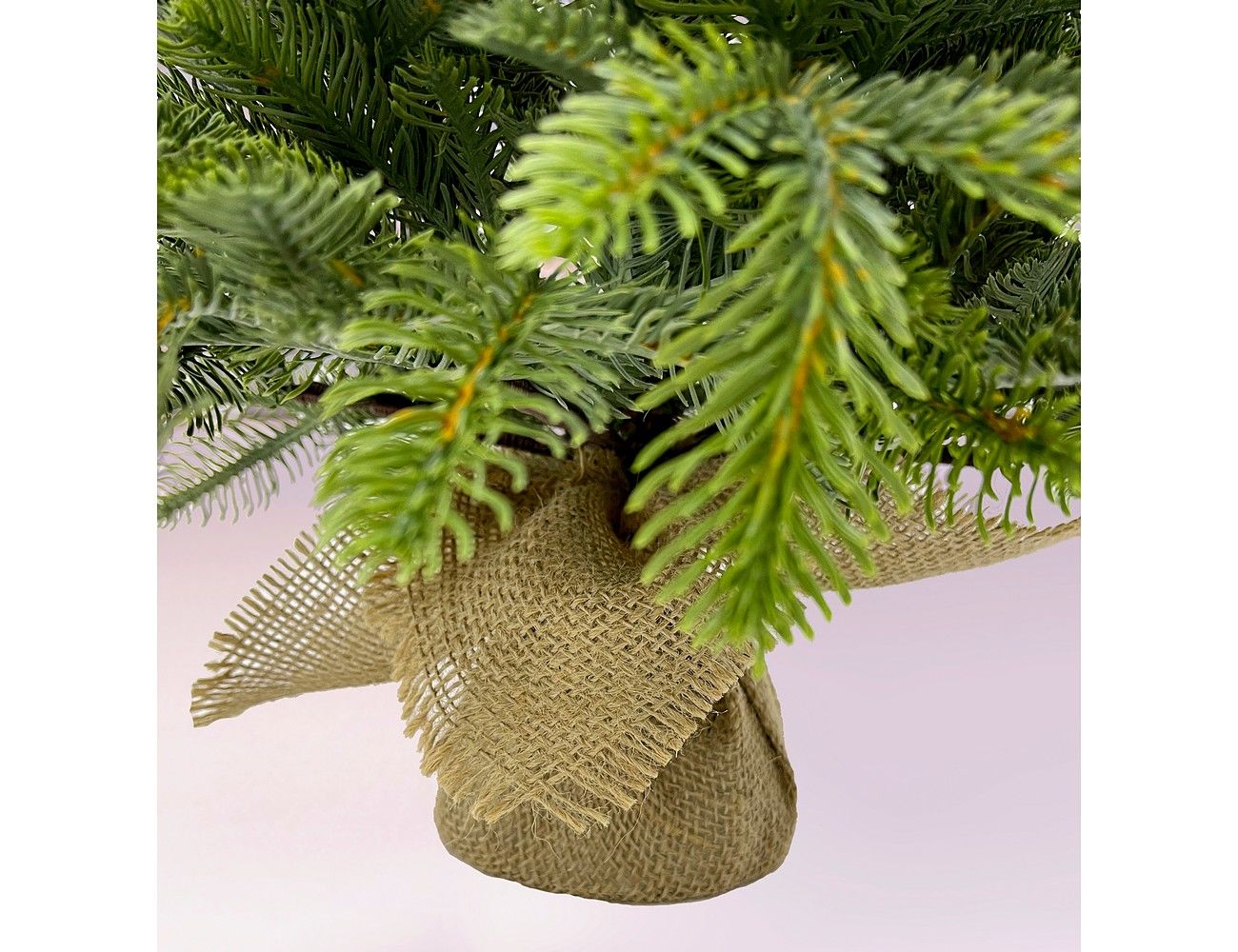 Маленькая, но замечательно душевная ёлочка, с так натурально приопущенными ветвями, словно явилась к нам прямо из леса! Взгляните только на её упругие иголочки, которые с расстояния пары шагов от настоящих отличить никак не возможно! Елочка ТАЁЖНАЯ полностью состоит из веточек с литой хвоей, выполненной методом формованного литья из полиэтилена высочайшего качества. А при взгляде на приятный, очень природный и насыщенный оттенок её иголок кажется, что каждая лапка пронизана солнечным теплом, которое это юное деревце собирало специально для вас летом! И как же удачно дополняет этот чудесный образ стильный и уютный джутовый мешочек-подставка!
