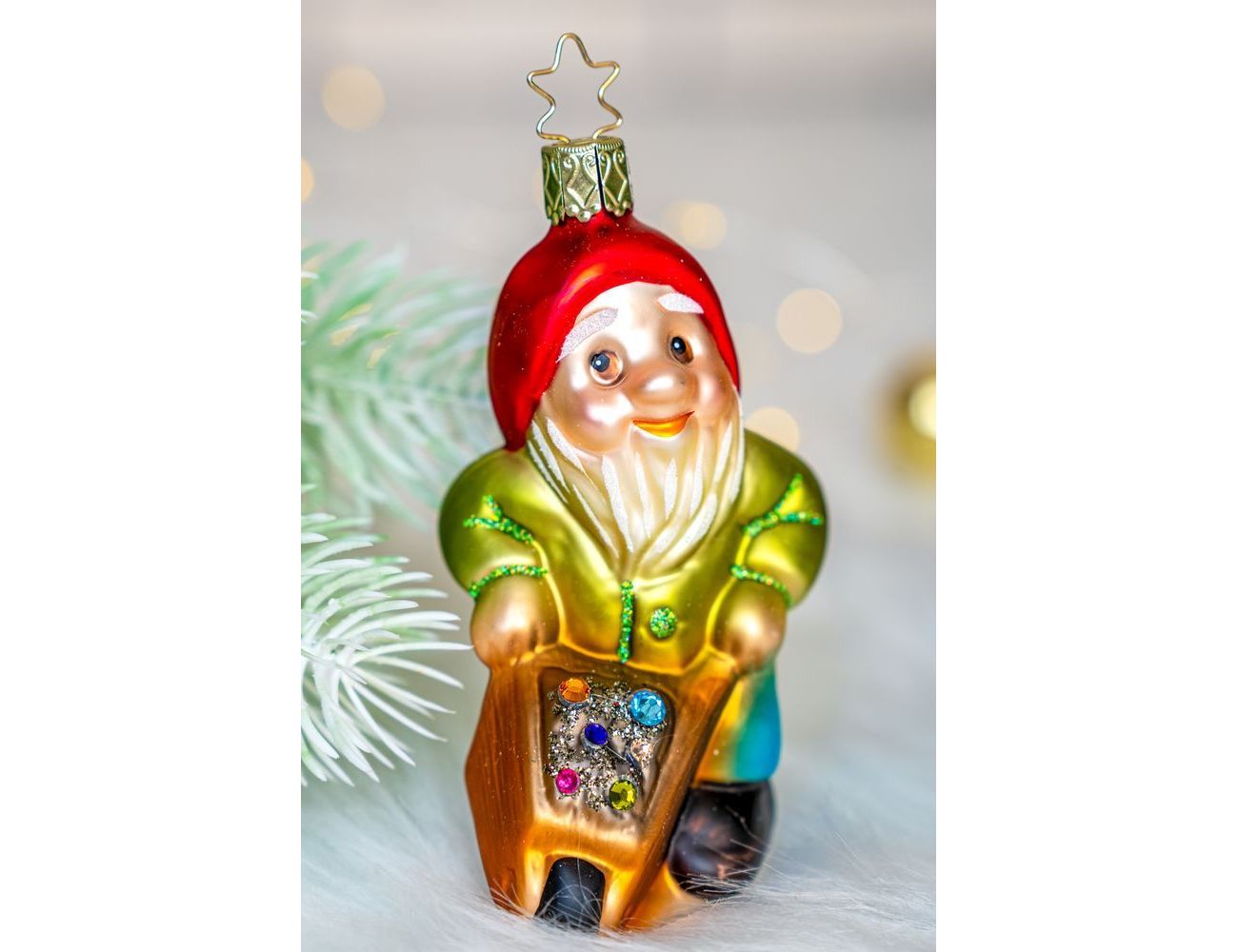 А вот встречайте бодрого и симпатичного гнома - он к вам прямиком из сказочной шахты, прикатил целую тачку отборных самоцветов! Вам их надолго хватит, а если не хватит - он ещё найдёт, хоть десять таких тачек доставит прямо на дом - готовьте сундуки, до побольше! Ну, а пока он с удовольствием передохнёт и отпразднует с вами наступление Нового года - он дюже любит хорошую компанию и весёлое застолье!