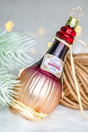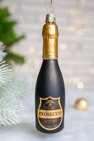 Стрелки часов уже приближаются к полуночи, сверкает украшениями и огоньками нарядная ёлочка, стол полон угощений… Чего-то не хватает? Да-да, пора достать из холодильника запотевшую бутылочку Просекко - пусть его искрящиеся пузырьки подарят всем радость, смех и беззаботное веселье! А чтобы об этом не забыть, надо просто украсить ёлочку вот такой очаровательной классической мини-бутылочкой!