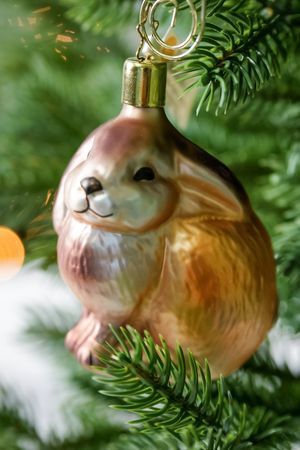 Милый зайка, славный зайка, и совсем он не трусишка, просто немножко застенчивый! И так ему хотелось не сидеть под ёлкой, а красоваться на ней, что застенчивость-то свою он почти преодолел и из-под ёлочки вылез, теперь уже дело за вами - нужно выбрать для него самое удобное и видное местечко среди пушистых хвойных лап, а то ему самому как-то неловко!