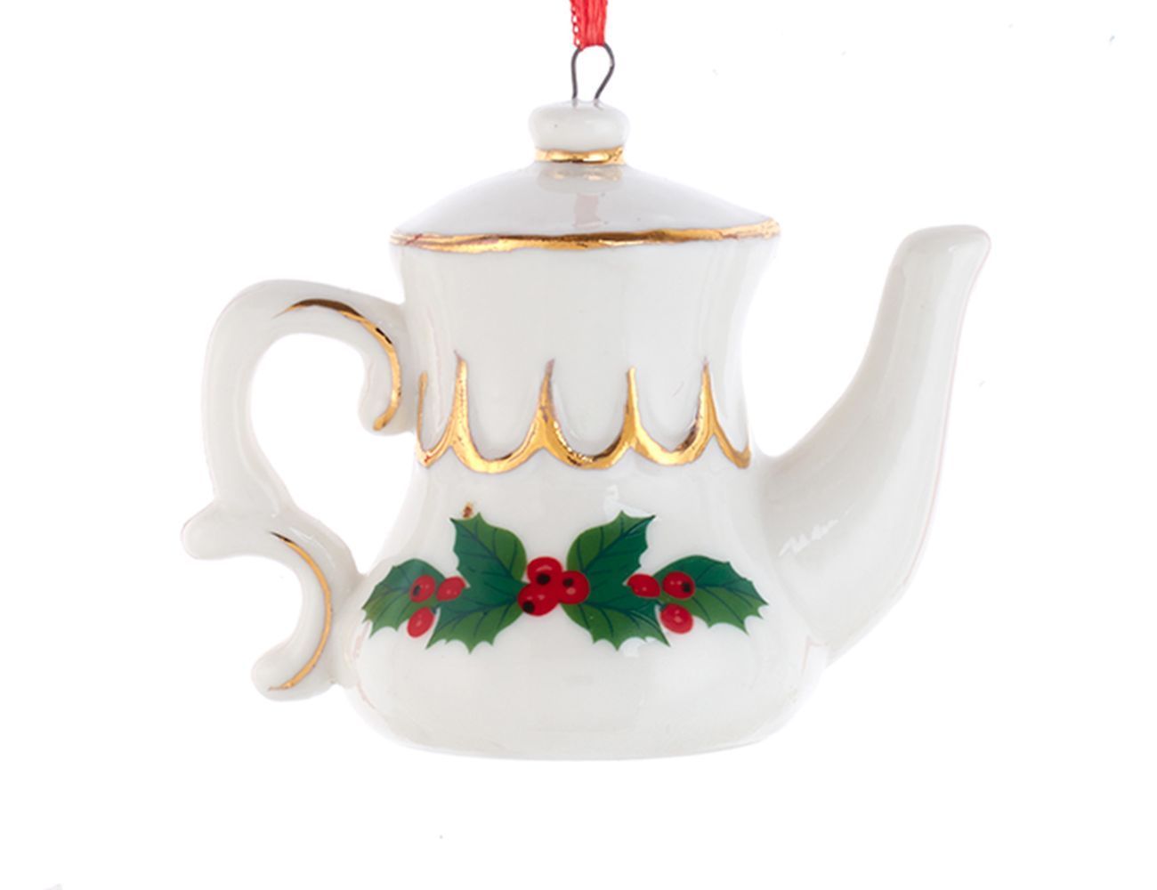 Ёлочная игрушка ЧАЙНИК - ОБАЯНИЕ ОСТРОЛИСТА, фарфор, 6 см, Kurts Adler