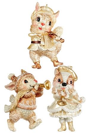 Набор ёлочных украшений ЛЕСНОЙ ОРКЕСТР, полистоун, 10 см, 3 шт., Goodwill