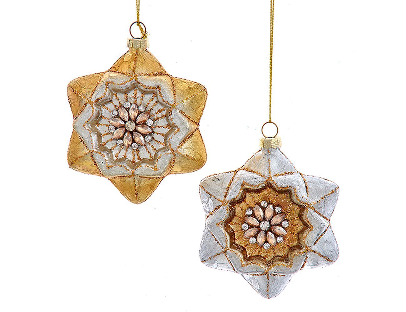 Ёлочная игрушка ЗВЁЗДОЧКА-ФИАЛКА, стекло, золотая, 11 см, Kurts Adler