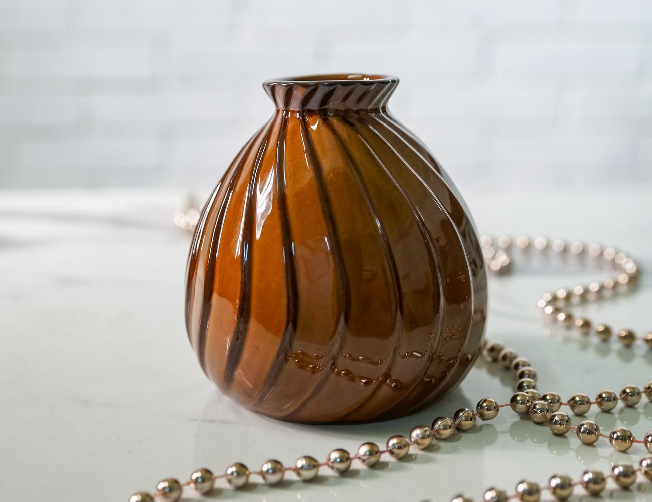 Слегка восточными нотками и чудящимися легкими ароматами орехов и специй заигрывает с нами эта фарфоровая вазочка цвета охры. Лаконичная, но изысканная - она подарит чудесно уютную атмосферу вашему дому!