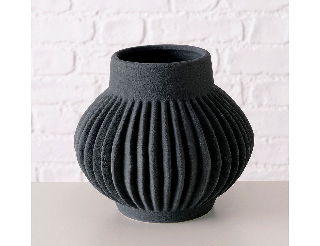 Необычная, будто песочная ваза, с легким веянием востока из-за своей формы, напоминающей китайский фонарик, но при этом лаконичного черного цвета. В эту вазу можно смело поместить яркие цветы и зелень, ведь за счет нейтральности цветового решения букет не будет перегружен.