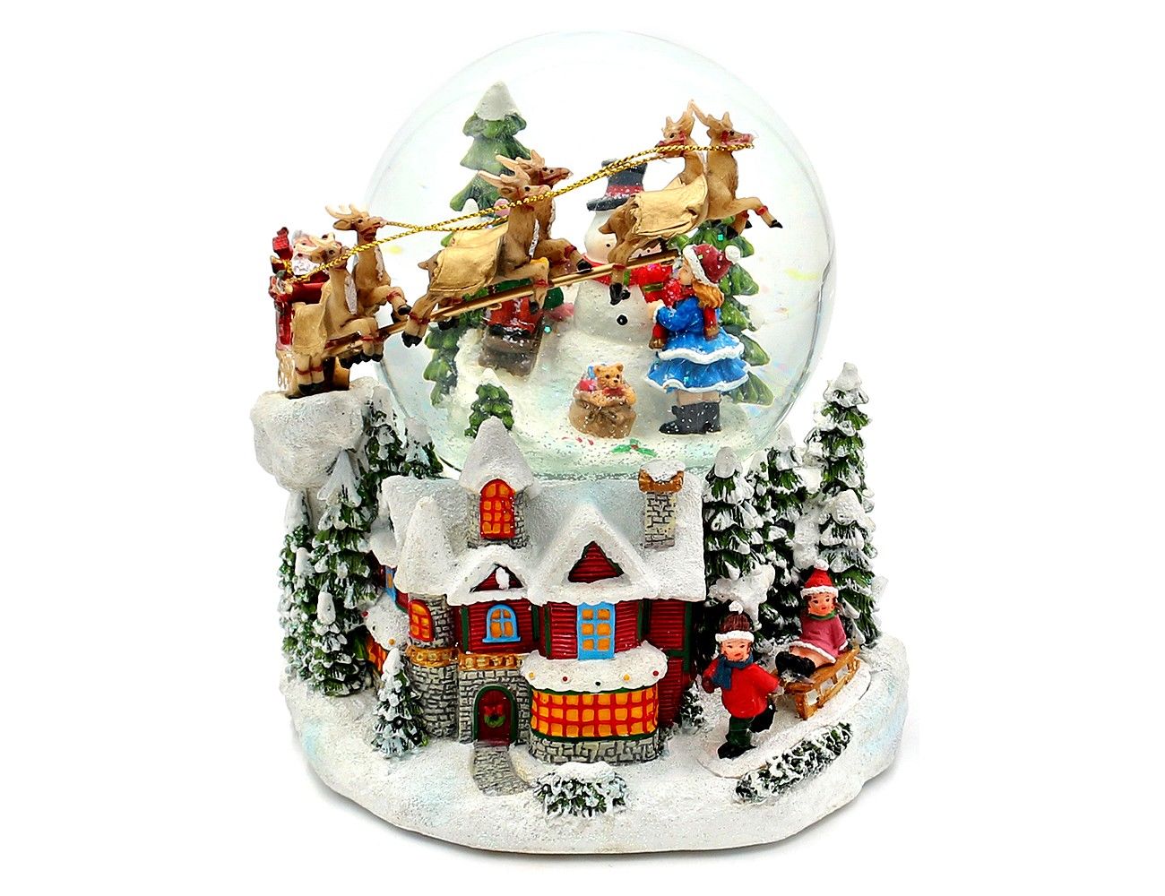 Музыкальный снежный шар ВСТРЕЧА ЭЛЛЫ С УПРЯЖКОЙ САНТЫ, полистоун, стекло, с подсветкой, 18 см, батарейки, Sigro